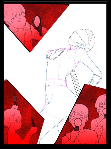 洗脳された子供達から、虫眼鏡を模した光線兵器で攻撃を受ける正義のヒロインの図。